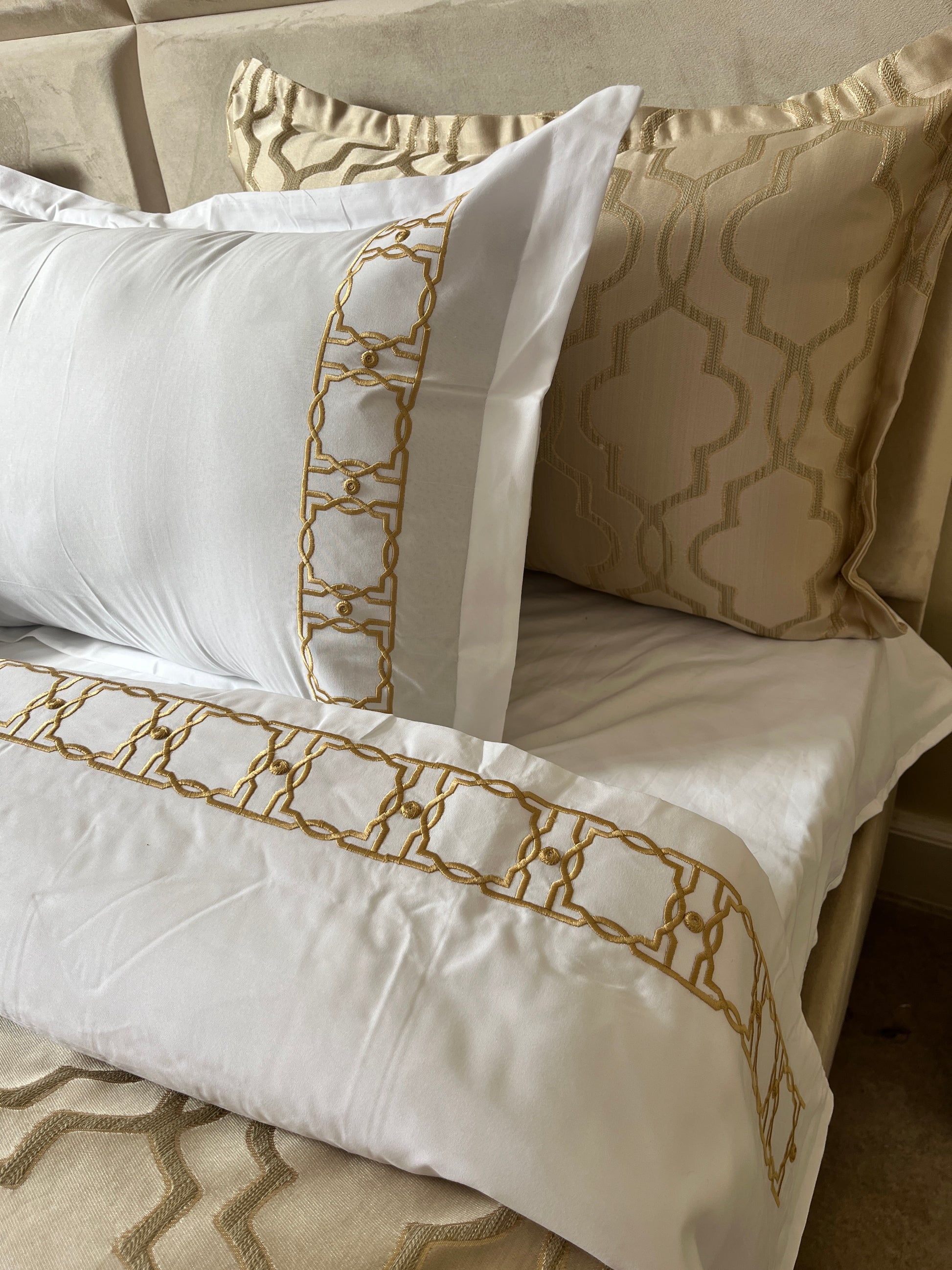 Set complet 6 pièces : couvre-lit + drap brodé + 4 taies d’oreiller