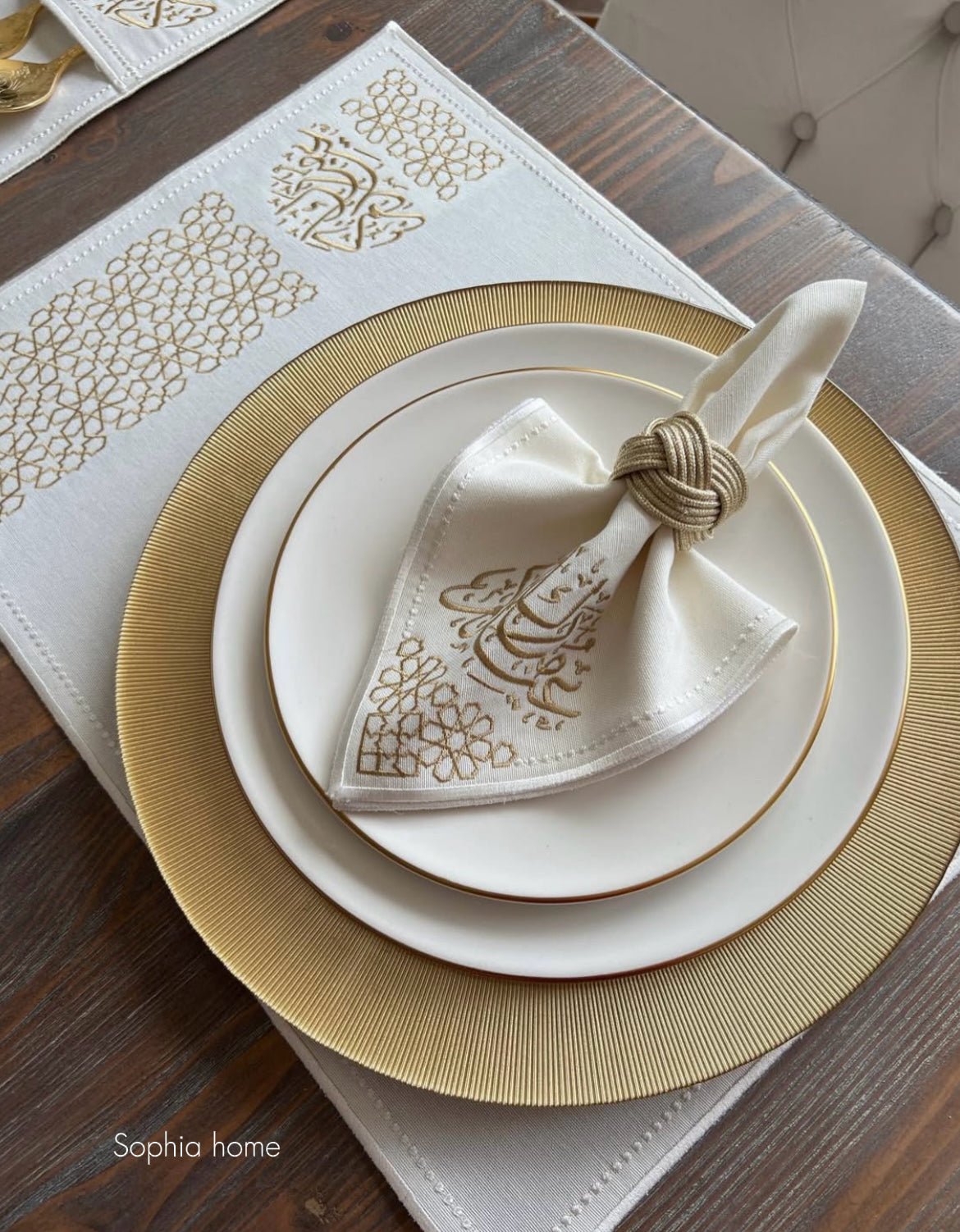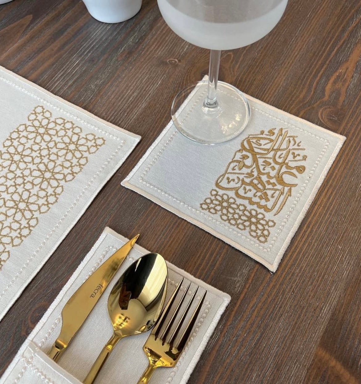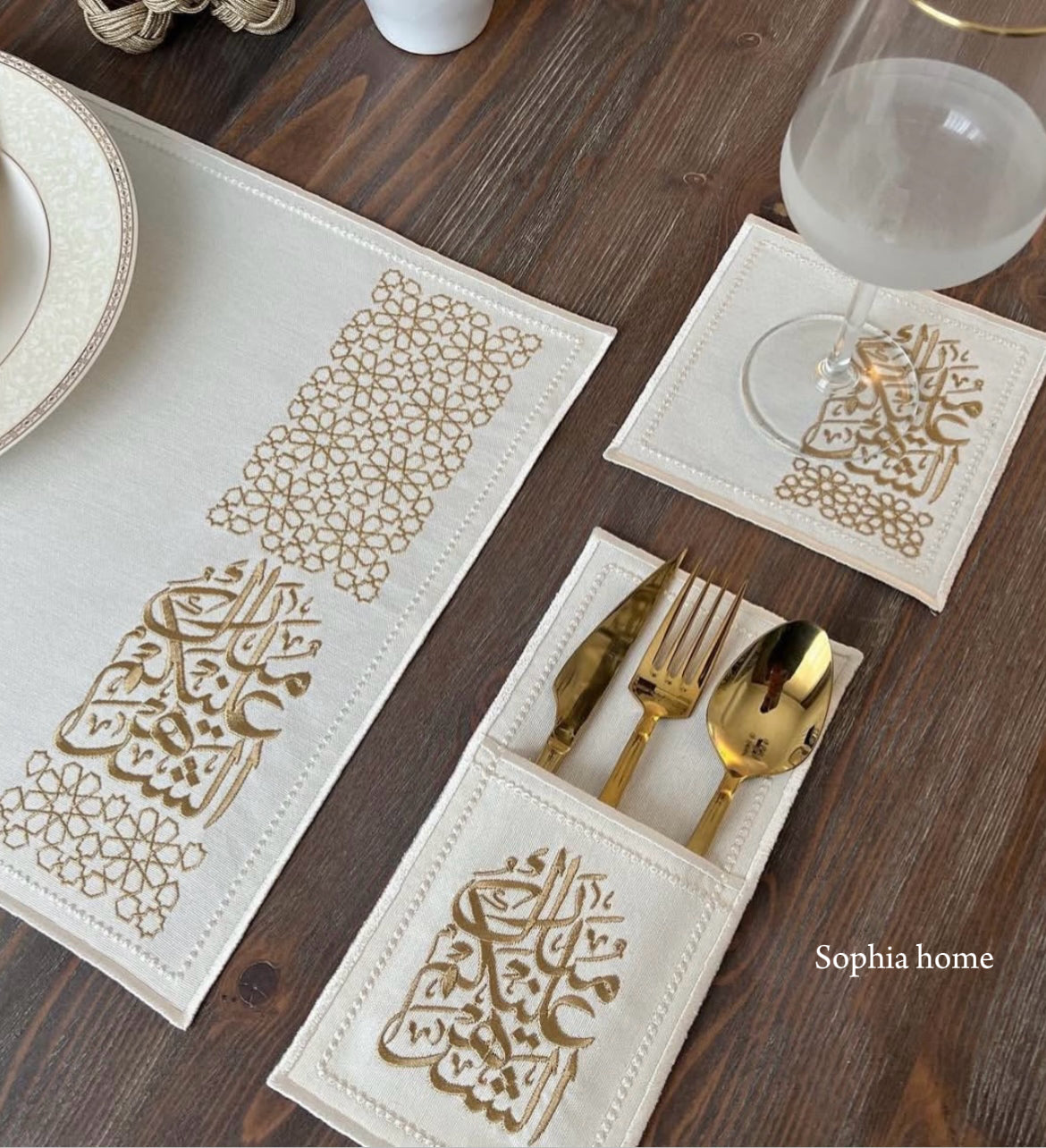 🕌 طقم مفارش مائدة رمضان – ذهبي فاخر